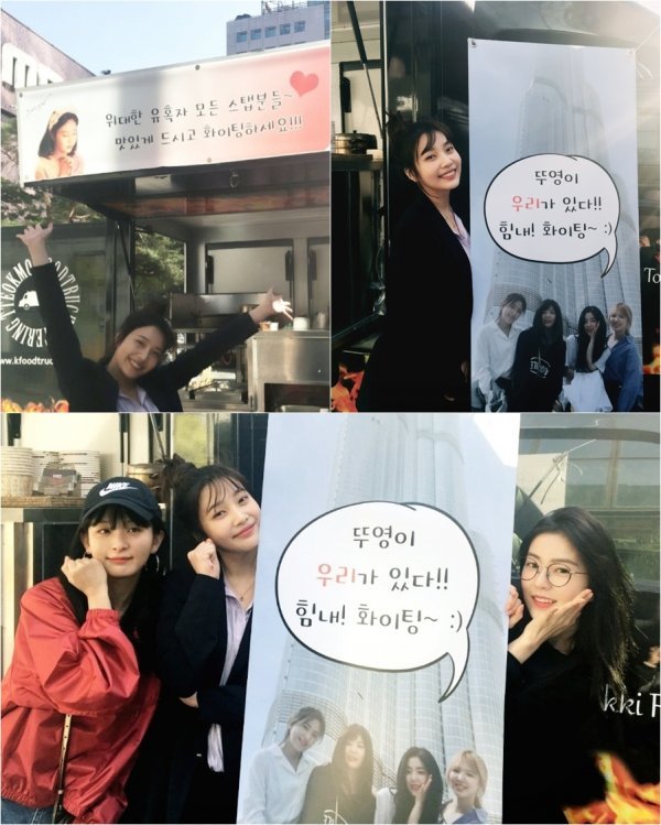 레드벨벳 멤버들은 MBC 월화드라마 ‘위대한 유혹자’에서 여주인공 은태희 역으로 활약하고 있는 박수영을 위해 “뚜영이, 우리가 있다 힘내!”라는 메시지와 함께 분식차를 보내며 응원했다.