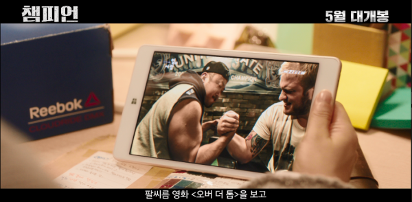 이어 오하이오 주에서 팔씨름 경기를 하는 '마크'의 모습과 체육관에서 훈련하는 모습, 폐차장에서 한 손으로 자동차를 끌어내리는 모습이 등장해 '챔피언'이 그려낸 국내최초 팔뚝액션에 대한 기대감을 더욱 드높인다. 그리고 ‘마크’와 ‘진기’(권율)의 톰과 제리 같은 티격태격 케미, 귀여움 끝판왕 ‘쭌쭌남매’의 신스틸 연기가 영화의 깨알 같은 재미를 예고한다. 영상의 말미에는 ‘수진’이 ‘마크’에게 “혼자 뭐해?” 라며 말을 걸고, ‘마크’의 “아… 나 목이 말라서..”라는 대답과 함께 산더미처럼 쌓인 맥주 캔이 등장해 예측을 뛰어넘는 현실 웃음을 선사한다.