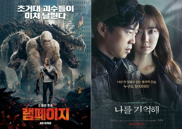 [DA:박스오피스] ‘램페이지’, 신작 개봉에도 1위 유지…‘나를 기억해’ 2위
