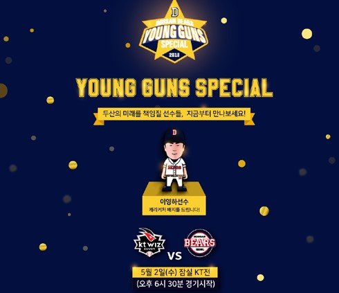 프로야구 두산베어스가 5월 2일(수) 잠실구장에서 열리는 kt와의 홈경기에서 ‘영건 스페셜(Young Guns Special)' 이벤트를 실시한다.