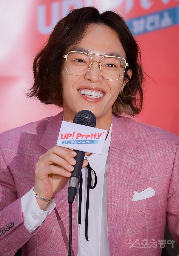 메이크업 아티스트 함경식이 20일 서울 강남구 청담동 드레스가든에서 열린 라이프타임 ‘업! 프리티’ 제작발표회에서 인사말을 하고 있다.