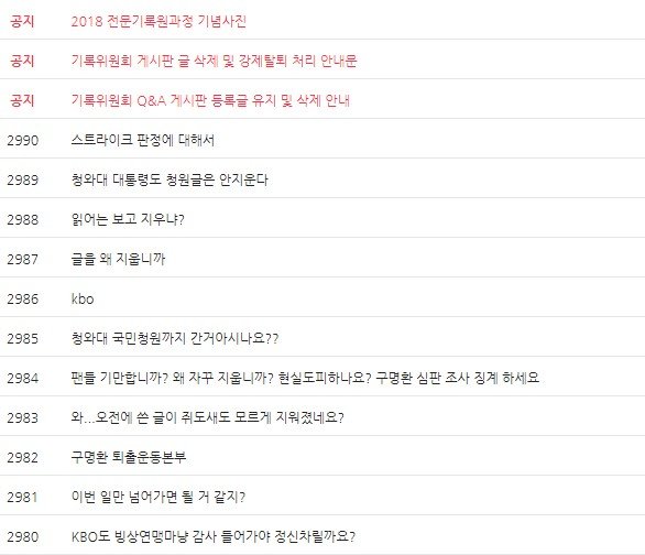 또 KBO 게시판에 구명환 심판 관련 항의글이 삭제됐다는 주장도 잇따라 나오면서 사태가 더욱 확대됐다.