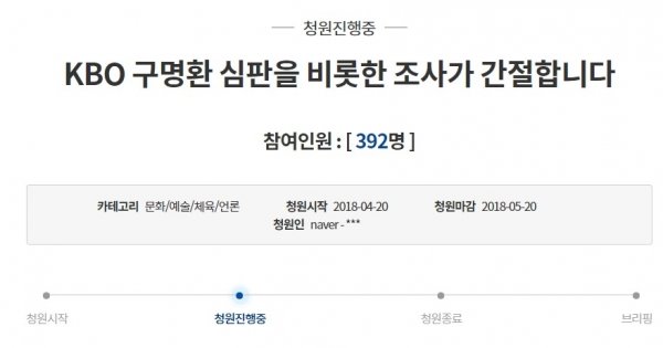 이 청원을 제기한 시민은 “너무 화가 나서 이렇게 글을 올린다. 우리나라에서 가장 인기있는 스포츠 종목 중 하나인 프로야구가 어둠의 세력들로 인해 더럽혀지고 있다”고 적었다.