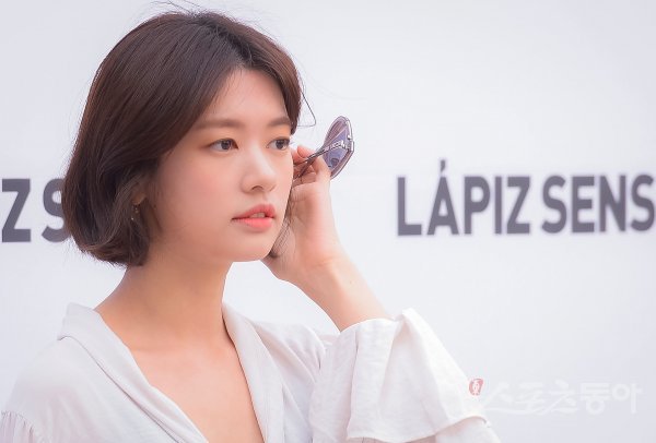 배우 정소민이 20일 서울 영등포구 신세계백화점 영등포점에서 진행된 아이웨어 브랜드 라피스센시블레 팝업스토어 오픈 기념 방문 이벤트에서 포즈를 취하고 있다.