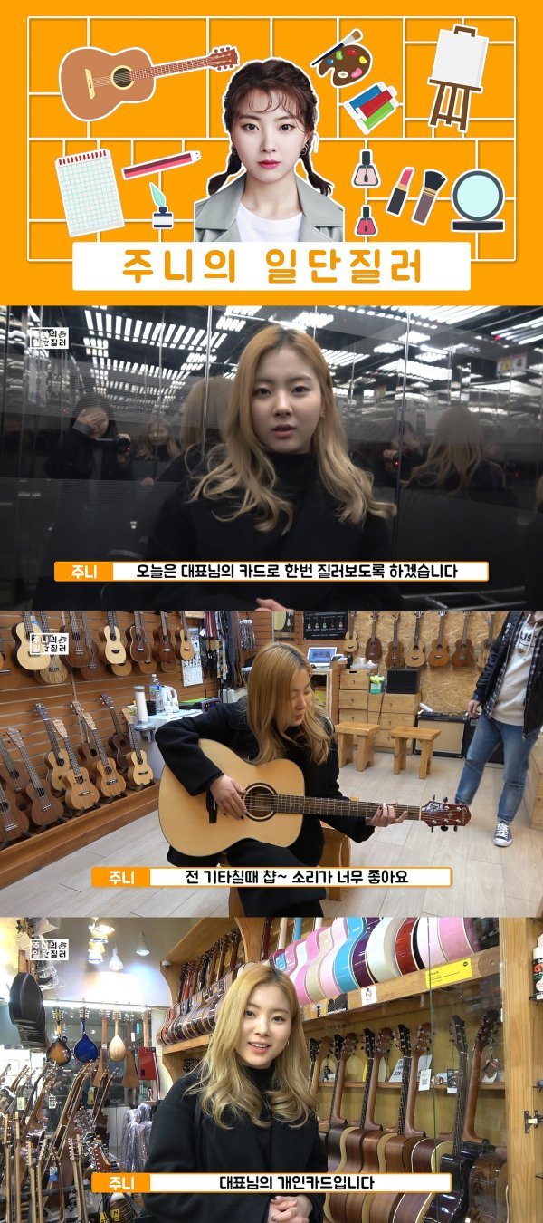 공개된 영상에서 주니는 회식자리에서 나온 이야기를 정말로 실행하겠다며 대표님의 개인카드로 기타를 구매하는 모습이 담겨 웃음을 자아냈다.