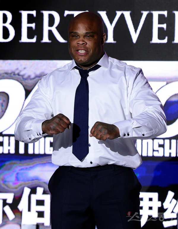오는 5월 12일 중국 베이징 캐딜락 아레나에서 열리는 ‘ROAD FC 47’ 대회를 앞두고 20일 중국 베이징 로드 멀티 스페이스에서 기자회견이 열렸다. 대회에 출전하는 길버트 아이블이 카메라를 향해 포즈를 취하고 있다. 한편 ROAD FC는 20일 중국 베이징에 초대형 규모의 MMA 복합 문화 공간인 ‘로드 멀티 스페이스’를 론칭했다.