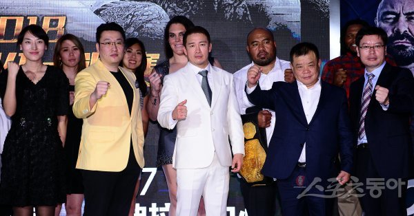 오는 5월 12일 중국 베이징 캐딜락 아레나에서 열리는 ‘ROAD FC 47’ 대회를 앞두고 20일 중국 베이징 로드 멀티 스페이스에서 기자회견이 열렸다. 정문홍 전 대표(가운데)가 로드FC 관계자들과 기념촬영을 하고 있다. 한편 ROAD FC는 20일 중국 베이징에 초대형 규모의 MMA 복합 문화 공간인 ‘로드 멀티 스페이스’를 론칭했다.