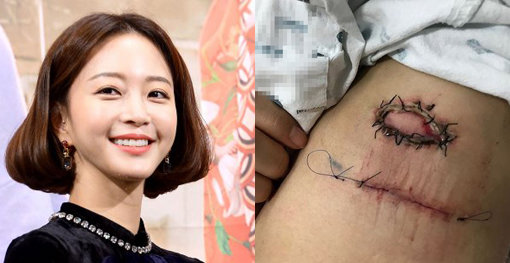 공개된 사진 속에는 한 눈에 봐도 커 보이는 수술 부위가 담겨 있다. 아직 실밥도 빼지 않은 상태의 상처가 팬들을 안타깝게 했다.