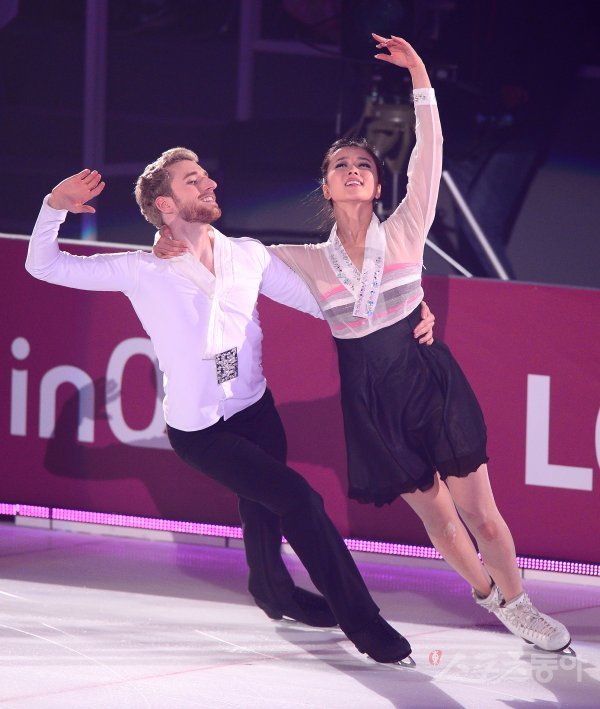 20일 서울시 목동아이스링크에서 열린 ‘인공지능 LG ThinQ 아이스판타지아 2018’ 아이스쇼에서 아이스댄스 민유라와 알렉산더 겜린이 연기를 펼치고 있다.