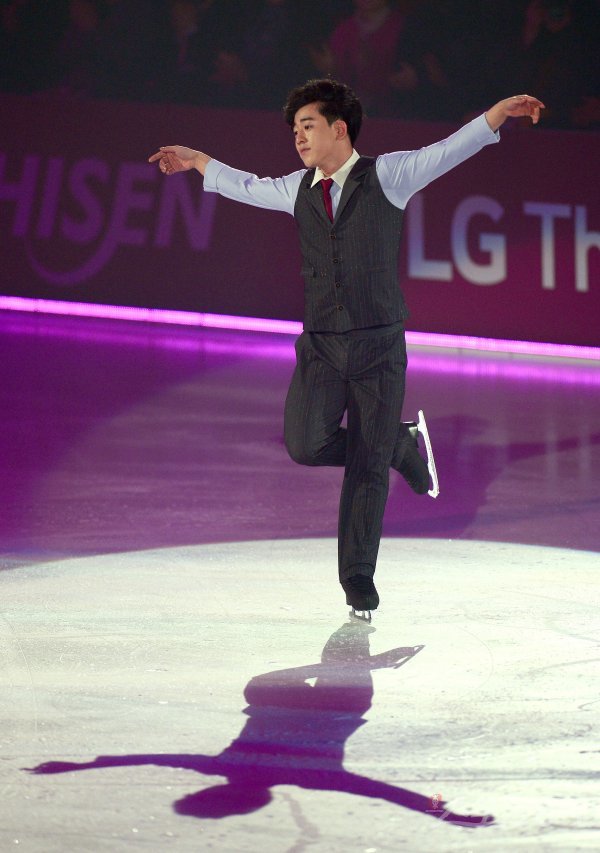 20일 서울시 목동아이스링크에서 열린 ‘인공지능 LG ThinQ 아이스판타지아 2018’ 아이스쇼에서 남자싱글 김진서가 연기를 펼치고 있다.