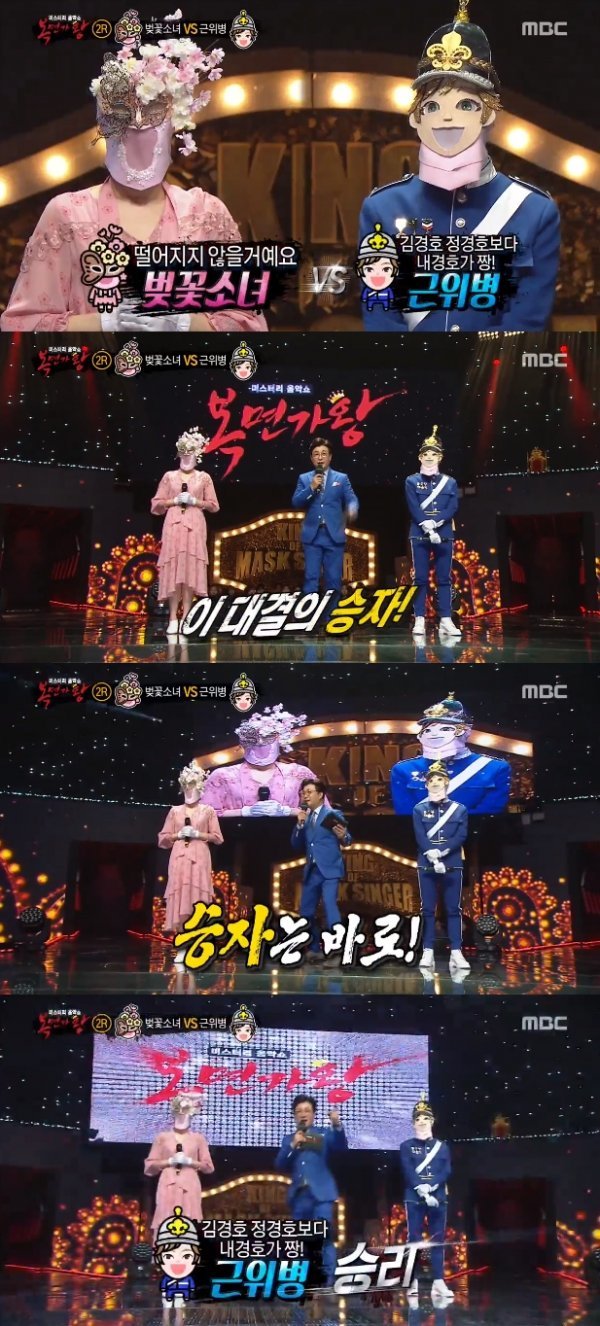 그리고 대결 결과는 근위병이 3라운드에 진출했다. 벚꽃소녀 정체는 가수 미였다.