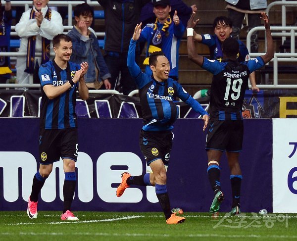 22일 인천축구전용경기장에서 열린 프로축구 ‘2018 KEB 하나은행 K리그1(클래식)’ 수원삼성과 인천유나이티드 경기에서 인천 문선민이 2-1로 앞서가는 골을 성공시킨 후 환호하고 있다.