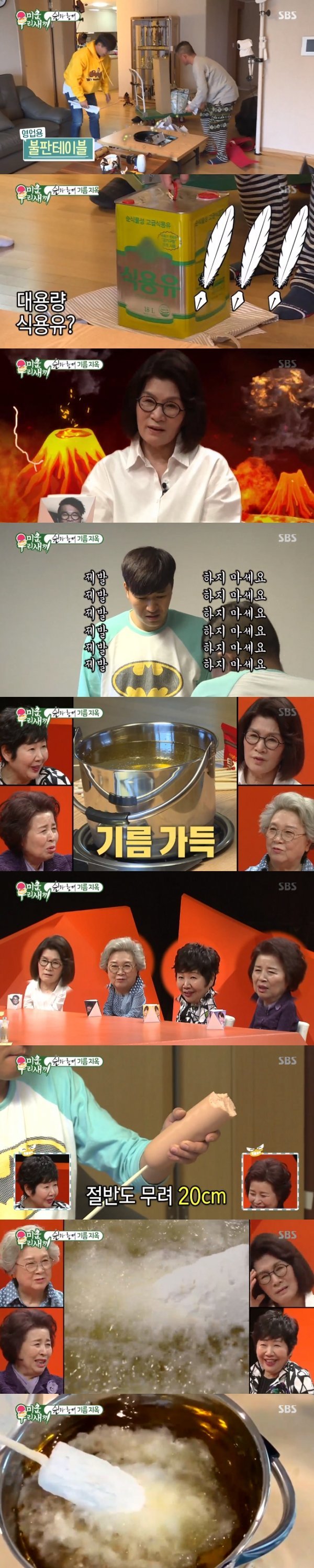 이어 시작된 핫도그 만들기. 스튜디오에서 이 모습을 지켜보는 어머니들은 경악을 금치 못했다. 특히 큰 소시지를 이용한 ‘대왕 핫도그’를 만들겠다는 김건모의 행동에 어머니는 한숨을 연신 내쉬었다.
