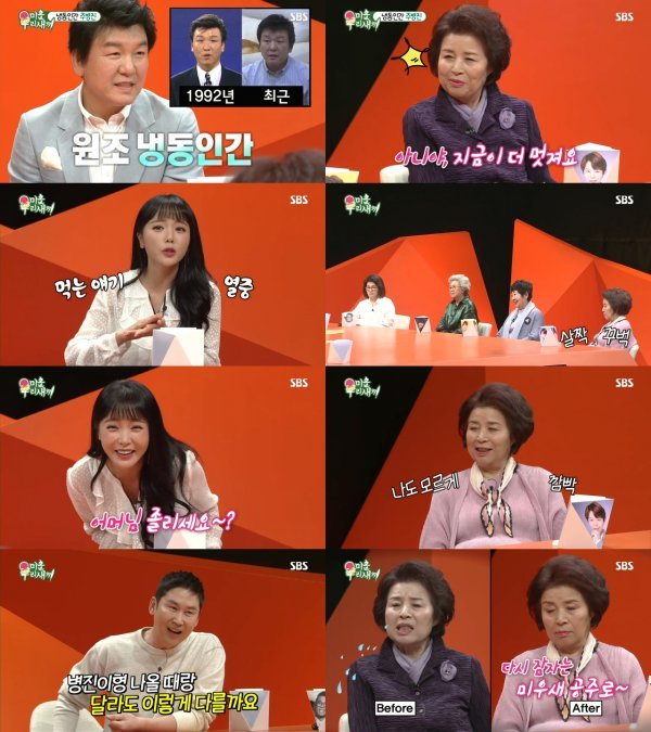 박수홍 어머니는 홍진영이 아들의 집을 방문했던 일을 계속 언급하며 관심을 표했고, 김종국 어머니 역시 홍진영이 ‘런닝맨’에서 김종국과 함께 어울리던 것을 언급하며 물러서지 않았다. 그렇게 달아오른 분위기를 토니안 어머니 이옥진 여사가 반전시켰다. 한창 녹화 중에 깜빡 잠이 든 것. 주병진이 앞에서는 단 한 순간도 졸지 않고 토크 열정을 불태웠던 이옥진 여사가 홍진영 앞에서는 사뭇 다른 모습을 선보이자 스튜디오는 웃음바다가 됐다.