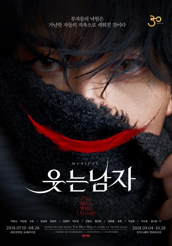 뮤지컬 ‘웃는 남자’는 EMK뮤지컬컴퍼니(이하 EMK)가 새롭게 선보이는 두 번째 창작뮤지컬로서 제작비 175억을 투자해 만든 올해 유일한 대극장 창작 뮤지컬이자 예술의전당 개관 30주년을 빛낼 기념비적인 작품으로도 주목 받고 있다. 뮤지컬 ‘웃는 남자’는 세계적인 대문호 빅토르 위고가 스스로 “이 이상의 위대한 작품을 쓰지 못했다”고 꼽은 소설《웃는 남자 L’Homme qui rit》(1869)를 원작으로 위대한 거장이 쌓아 올린 탄탄한 서사구조를 뮤지컬 양식에 걸맞게 완벽히 구축하여 21세기 최고의 작품으로 선보일 예정이다.