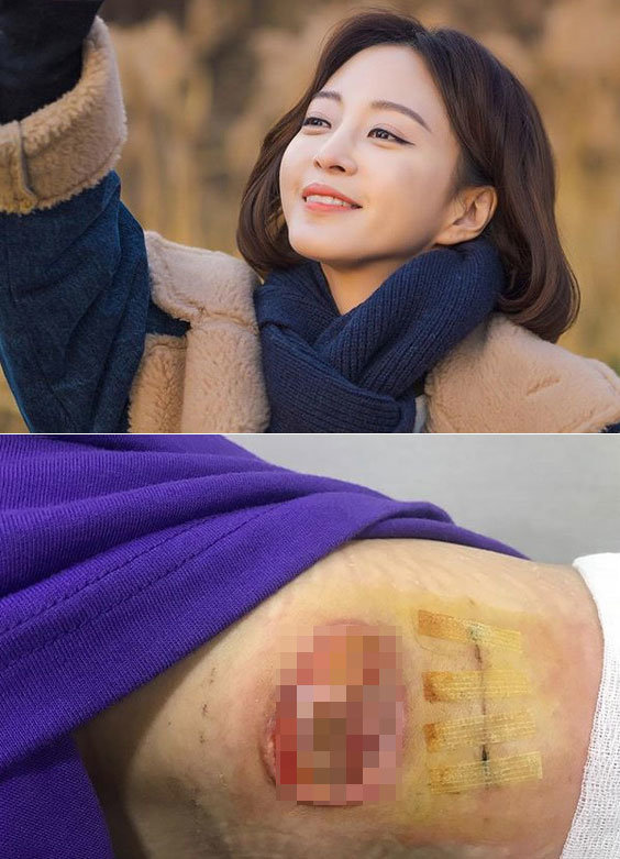이와 함께 지방종 제거 수술 부위의 상태를 공개했다. 수술한지 2~3주가 흘렀지만, 상태가 호전되지 않았음을 보여주고 있다.