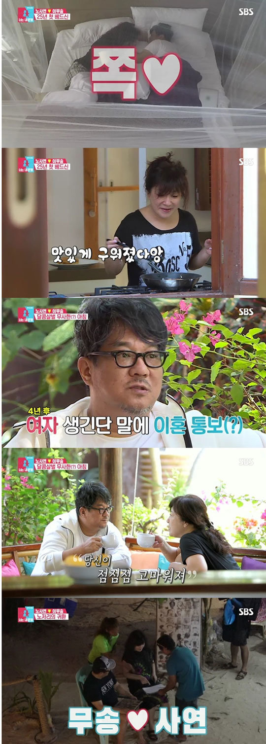 신혼 당시 ‘결혼이몽’에 대해 밝히던 이무송은 노사연이 4년 뒤 자신에게 여자친구가 생길 거라는 점괘를 듣고 \'이혼하자\'는 이야기를 해 충격을 받았던 이야기를 공개했다. 이에 노사연은 미안한 마음을 드러냈다. 또 이 날 저녁, 해변 산책에 나선 두 사람은 헤나와 레게 머리에 도전했다. 노사연은 두 사람의 이니셜을, 이무송은 자신의 팔에 ‘사연이꺼’라고 헤나를 새긴 뒤 인증샷을 아들에게 보내며 알콩달콩한 부부애를 과시했다.