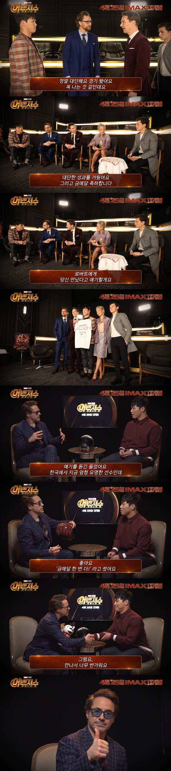 마블 스튜디오의 클라이맥스 ‘어벤져스: 인피니티 워’를 통해 내한 배우 4인과 ‘아이언맨’ 로버트 다우니 주니어를 만나며 화제를 모은 윤성빈 선수. 드디어 윤성빈 선수와 내한 배우들, 그리고 로버트 다우니 주니어의 인터뷰가 공개됐다.