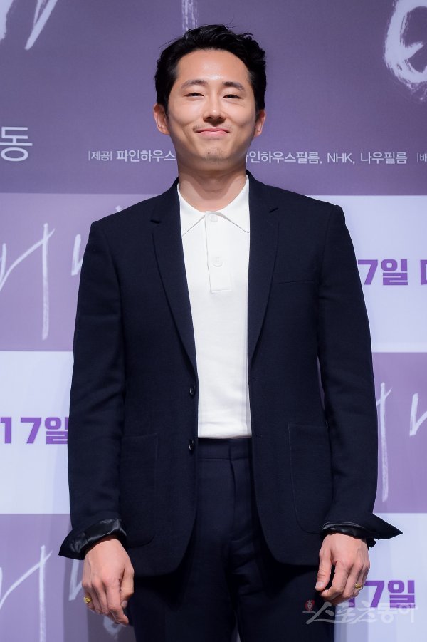 배우 스티븐 연이 24일 서울 강남구 압구정로에 위치한 CGV 압구정에서 열린 영화 ‘버닝’ 제작보고회에서 포즈를 취하고 있다.