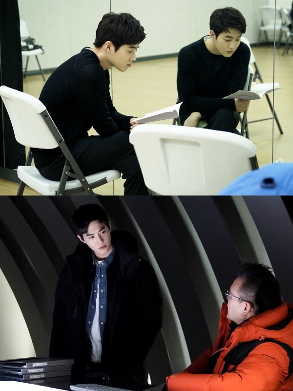 공개된 사진 속에는 대본 삼매경에 빠진 김준면(이유찬 분)의 모습이 담겼다. 극 중 한국의 ‘스티브 잡스’로 불리는 안하무인 천재 이유찬 역을 더욱 입체적으로 표현하기 위해 매 순간을 고민, 쉬는 시간에도 대본을 손에서 놓지 않는 모습이 포착된 것.