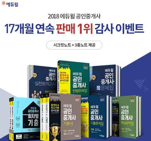 에듀윌이 출간한 공인중개사 교재는 2016년 12월부터 2018년 4월까지 독보적으로 온라인 서점 공인중개사 부문 17개월 연속 베스트셀러 1위를 차지하고 있다.