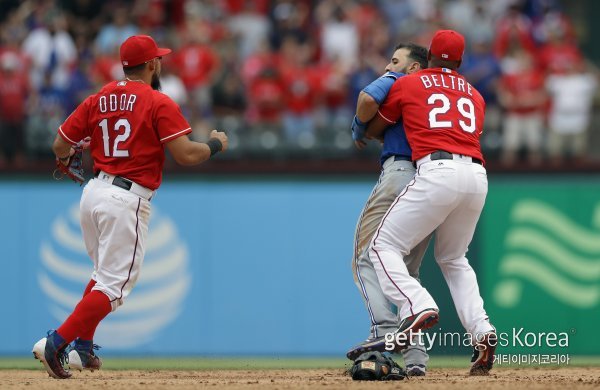 그 여파는 이듬해 5월 16일 글로브라이프파크로 옮겨졌다. 8회초 1루서 2루로 거칠게 슬라이딩해 들어가던 바티스타가 그만 텍사스 2루수 루그네드 오도어를 들이받을 뻔했다. 가까스로 바티스타의 살인 태클을 피했지만, 오도어는 분노를 가라앉힐 수 없었다. 말싸움 끝에 오도어의 강력한 오른손 펀치가 바티스타의 안면으로 날아들었다. 마치 ‘다윗과 골리앗’을 연상시키는 반전이었다.