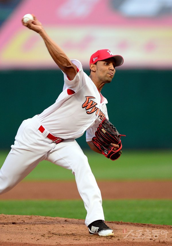 25일 인천 SK행복드림구장에서 ‘2018 신한은행 마이카 KBO리그’ SK 와이번스와 두산 베어스의 경기가 열렸다. SK 선발투수 산체스가 힘차게 볼을 던지고 있다.
