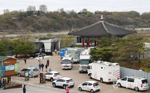 경기 파주 임진각에서 방송사들이 남북정상회담 특집방송을 위해 스튜디오를 준비중인 모습. 동아일보DB