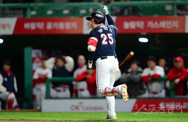 25일 인천 SK행복드림구장에서 ‘2018 신한은행 마이카 KBO리그’ SK 와이번스와 두산 베어스의 경기가 열렸다. 9회초 1사에서 두산 양의지가 SK 박정배를 상대로 역전 솔로 홈런을 쏘아 올린 뒤 그라운드를 돌고 있다.