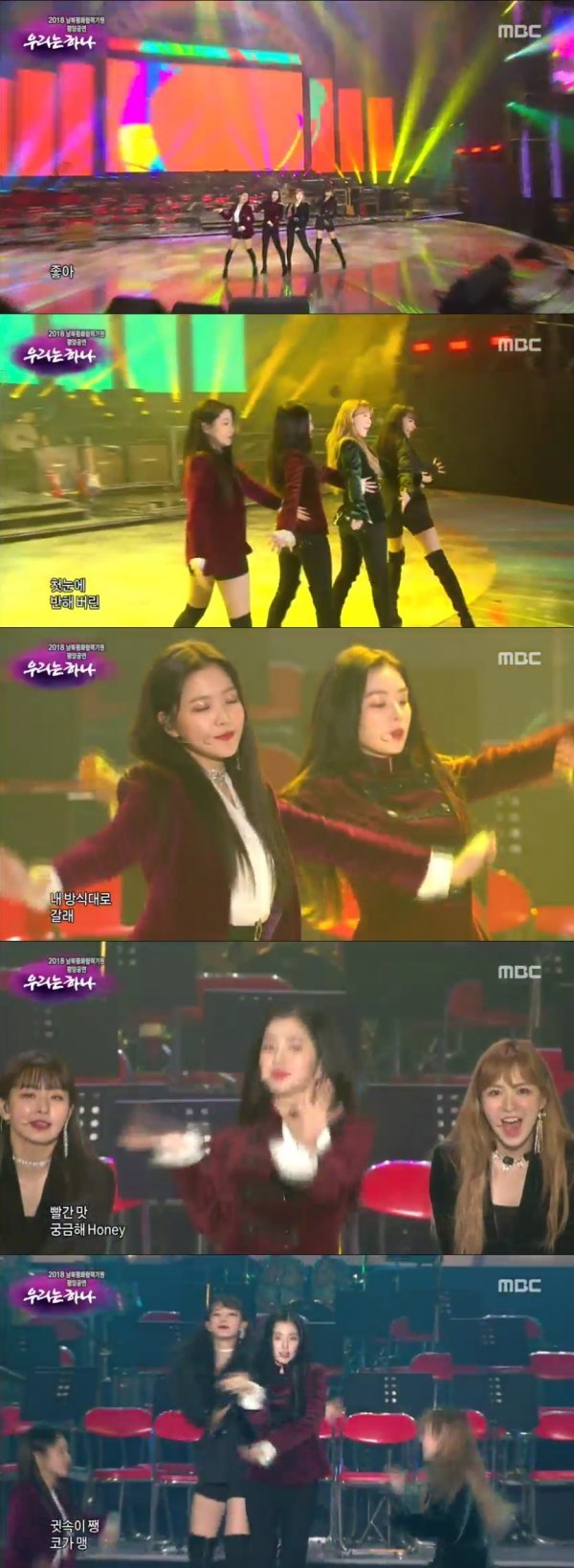 25일 방송된 2018 남북평화협력기원 평양공연 ‘우리는 하나’에서는 걸그룹 레드벨벳이 ‘빨간 맛’ 무대를 선보이는 장면이 그려졌다.