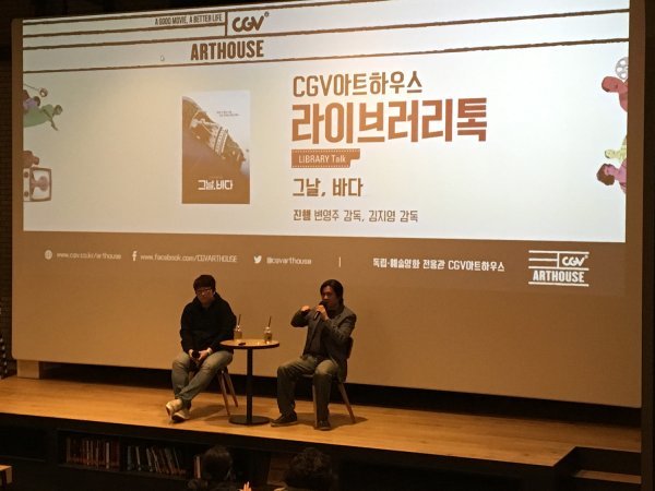 개봉 12일 만에 40만 명 관객을 넘어서며 멈추지 않는 흥행 질주를 이어가고 있는 ‘그날, 바다’가 25일(수) CGV명동역 씨네라이브러리에서 ‘그날, 바다’의 연출을 맡은 김지영 감독과 변영주 감독이 함께한 라이브러리톡을 성황리에 마쳤다. 이번 라이브러리톡은 두 감독의 깊이 있는 대화로 시작됐다.