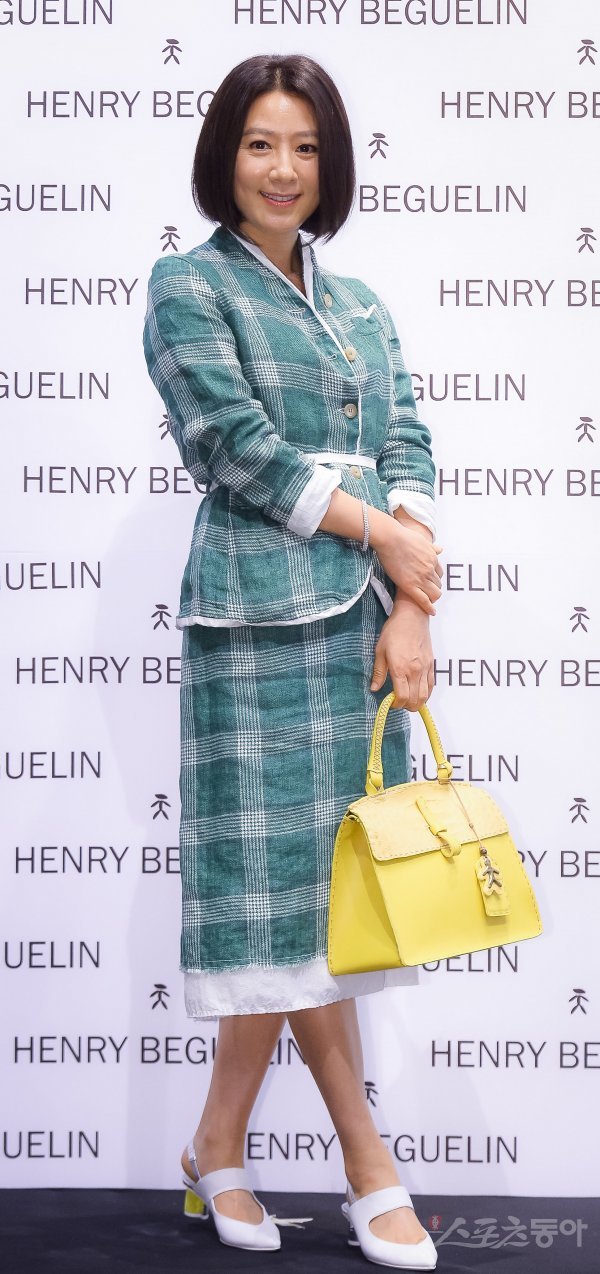 배우 김희애가 26일 서울 강남구 선릉로에 위치한 한 이태리 명품 핸드메이드 가죽 브랜드의 압구정 로데오 플래그십 스토어 오픈 기념 포토월에서 포즈를 취하고 있다.