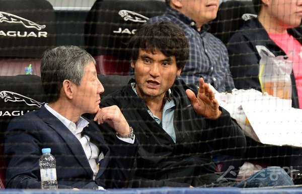 KBO 장윤호 사무총장과 박찬호가 경기를 관람하고 있다.