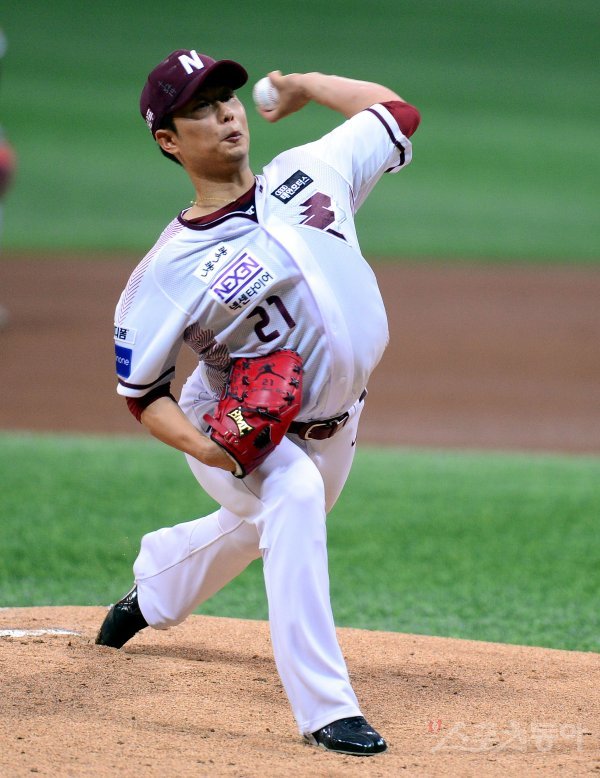 29일 서울 고척스카이돔에서 ‘2018 신한은행 마이카 KBO리그’ 넥센 히어로즈와 SK 와이번스의 경기가 열렸다. 넥센 선발투수 김성민이 힘차게 볼을 던지고 있다.