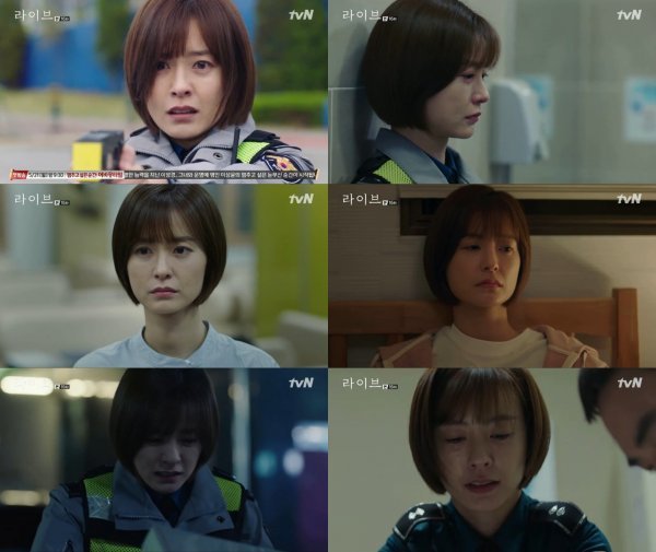 지난 29일 tvN 토일드라마 ‘라이브(Live)’ 16회에서는 대낮에 벌어진 사제총기 사건으로 인해 경찰 일에 회의를 느끼고 국비유학을 준비하는 한정오(정유미)의 모습이 그려졌다.