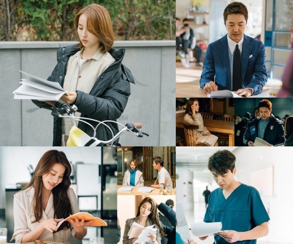 공개된 비하인드 스틸 속 한혜진(남현주 역)-윤상현(김도영 역)-유인영(신다혜 역)-김태훈(장석준 역)은 대본과 한 몸이 된 모습으로 시선을 강탈한다. 네 배우 모두 시간과 장소를 가리지 않고 대본 공부에 몰입하고 있다.