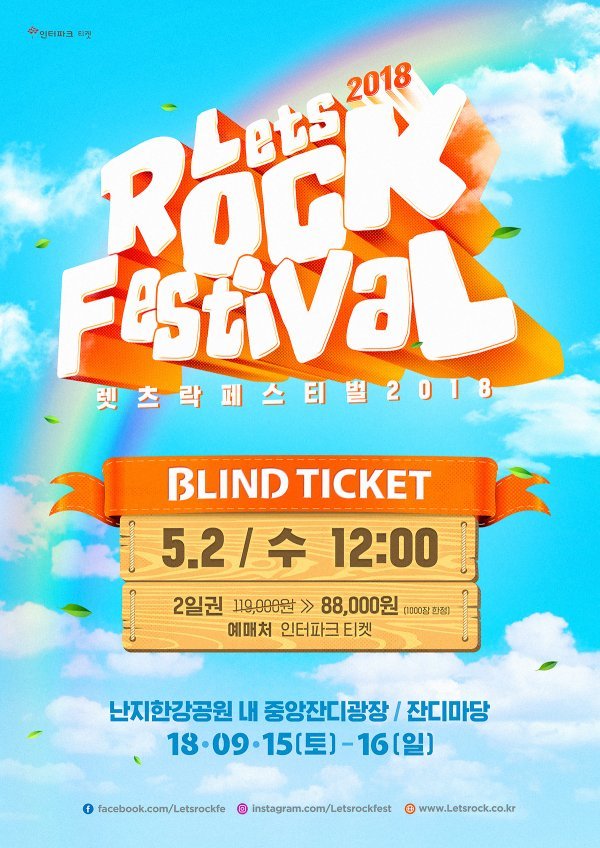2018 렛츠락 블라인드 티켓은 오는 5월 2일 수요일 정오 인터파크 티켓을 통해 판매를 개시한다.