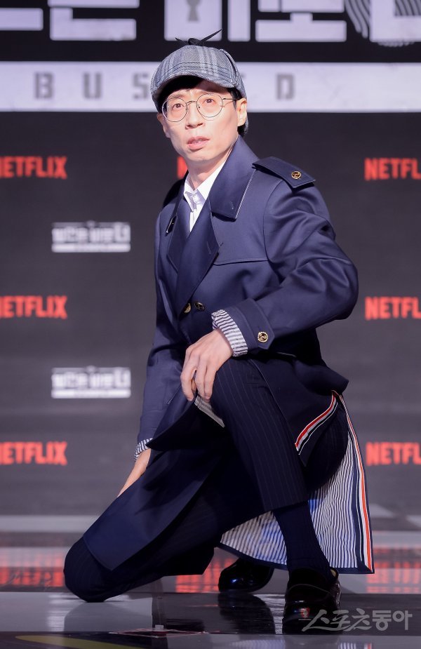개그맨 유재석이 30일 서울 강남구 삼성동 인터컨티넨탈 서울 코엑스에서 열린 세계적인 인터넷 엔터테인먼트 기업 넷플릭스(Netflix) 오리지널이자 최초의 한국 예능 ‘범인은 바로 너!’ 제작발표회에서 포즈를 취하고 있다.