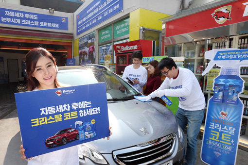 불스원은 20일까지 자동세차 이용 고객을 대상으로 셀프 유리막 코팅제 ‘크리스탈 코트 무료체험’ 프로모션(사진)을 진행한다. 자동세차는 기계의 과중한 힘과 불규칙한 타올 방향으로 도장면에 거미줄 모양의 흠집인 ‘스월마크’를 발생시키는데, 이는 차량 광택 저하의 원인이 된다. 이번 프로모션은 스월마크에 대해 알리고, 이를 예방하는 셀프 유리막 코팅제 ‘크리스탈 코트’ 체험 기회를 제공하기 위해 마련됐다. 20일까지 주말마다 서울시내 주유소 자동세차장 한 곳에서 프로모션을 실시한다. 자세한 내용은 불스원 러브마이카 캠페인 사이트 또는 공식 페이스북을 통해 확인할 수 있다.