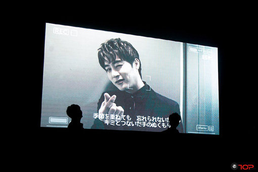 그룹 백퍼센트가 일본 콘서트에서 고인이 된 멤버 민우를 추모하고 있는 모습. 사진제공|티오피미디어