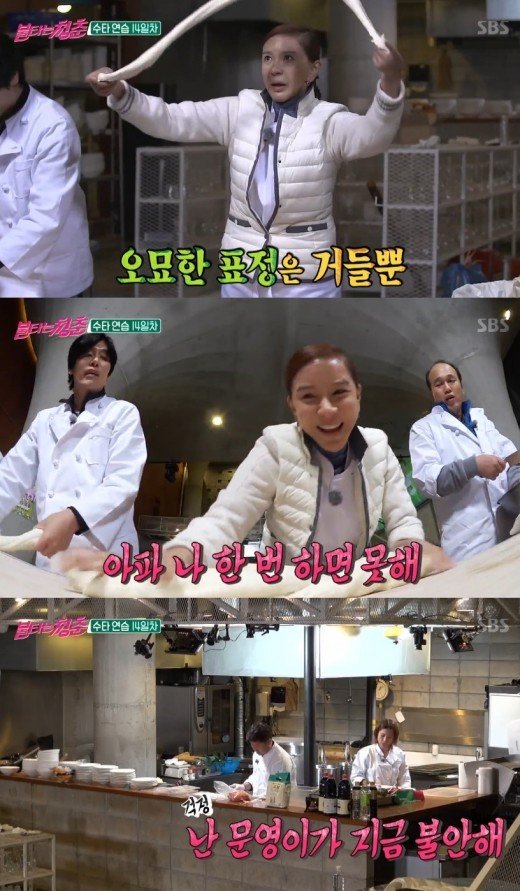 이날 강문영은 손목 통증에도 불구하고 수타면을 만들어내 감탄을 자아냈다.
