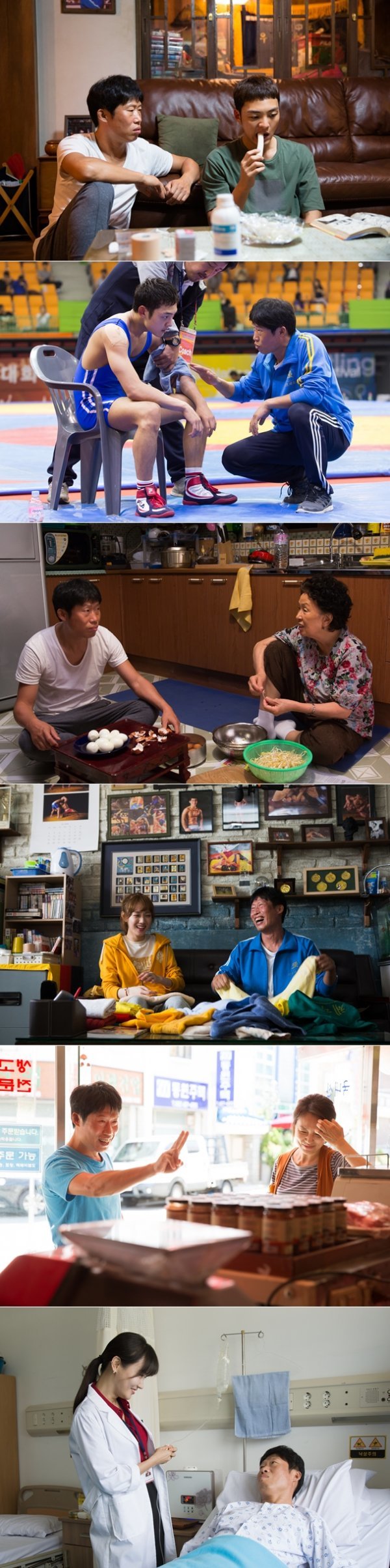 이번에 공개된 케미 스틸은 살림 9단 아들 바보 ‘귀보씨’와 그의 인생을 유쾌하게 뒤집은 인물들과의 호흡을 고스란히 담고 있어 눈길을 끈다. 먼저 ‘귀보씨’와 아들 ‘성웅’이 티격태격 말싸움을 하면서도 함께 간식을 챙겨먹고, 경기를 앞두고 긴장한 성웅을 다독이는 귀보의 모습까지 레슬러 부자의 일상을 담은 스틸은 다정한 표현은 없지만 언제나 서로의 곁에 있는 가족의 모습으로 기분 좋은 미소를 자아낸다.