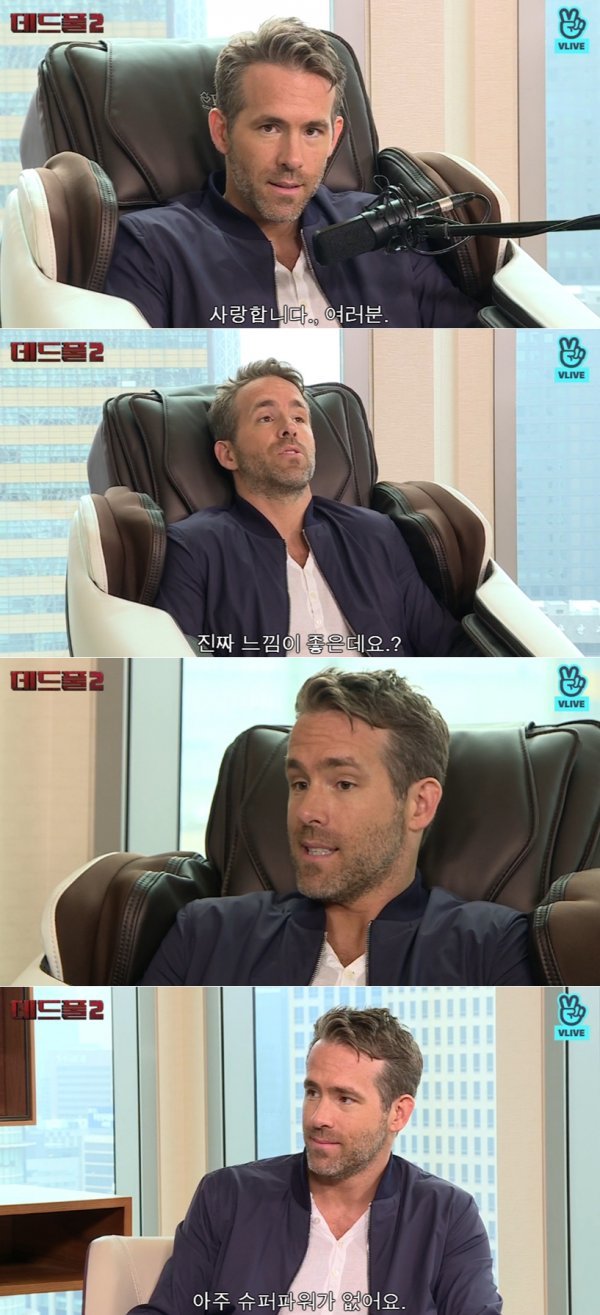 ‘데드풀2’ 라이언 레이놀즈가 V앱에 떴다. ‘병맛’ 코드 넘치는 유쾌한 오락 무비의 주인공답게 라이언 레이놀즈 또한 호쾌하고 매력적이었다. 이번 인터뷰는 독특하게 마사지 기계에 몸을 맡긴 채 진행, 말미에는 ASMR까지 마련돼 신박하고 흥미로운 방송으로 남았다.