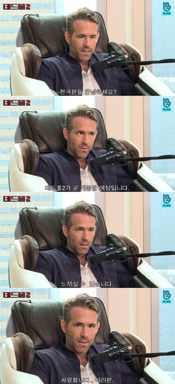 인터뷰 말미 라이언 레이놀즈는 마사지를 받으면서 ASMR(Autonomous sensory meridian response:자율 감각 쾌락 반응) 방송을 하기도 했다. 그는 “‘데드풀2’가 개봉할 예정이다. 아마 여러분도 좋아하실 것이다. 끝없는 긴장감과 재미를 느낄 수 있을 것이다. 한국을 사랑한다. 정말 사랑한다”고 속삭이면서 “굿나잇”이라고 말했다. 대낮에 건네는 다소 쌩뚱 맞은 인사로 듣는 이들의 웃음을 유발했다.