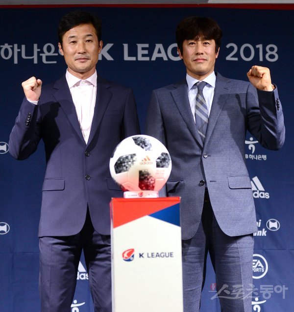 미디어데이에 참석한 FC서울 이을용 감독대행과 수원삼성 서정원 감독이 포토타임을 갖고 있다.