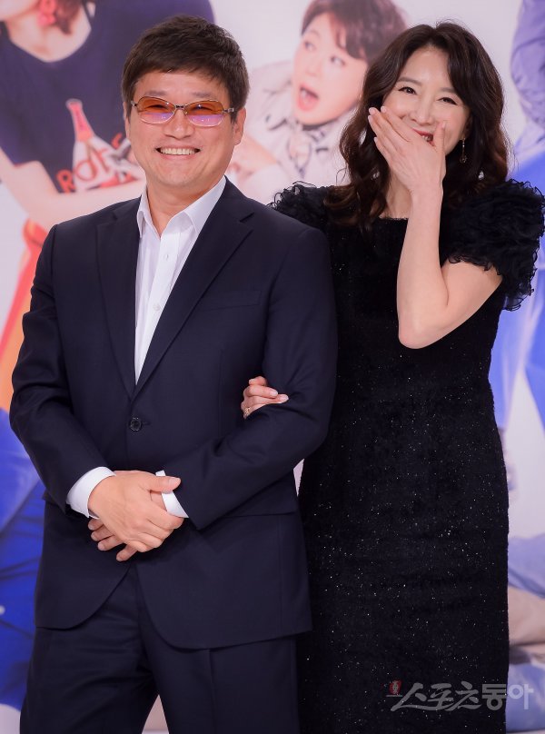 배우 최재성과 심혜진(오른쪽)이 3일 서울 영등포 타임스퀘어 내 아모리스 홀에서 열린 KBS1 새 저녁일일극 ‘내일도 맑음’ 제작발표회에서 포즈를 취하고 있다.