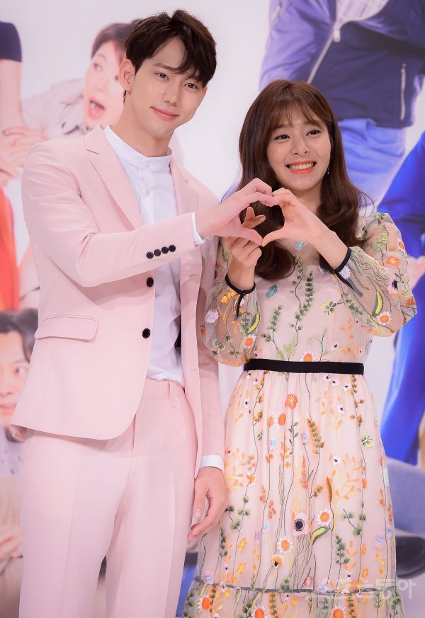 배우 진주형과 설인아(오른쪽)가 3일 서울 영등포 타임스퀘어 내 아모리스 홀에서 열린 KBS1 새 저녁일일극 ‘내일도 맑음’ 제작발표회에서 포즈를 취하고 있다.