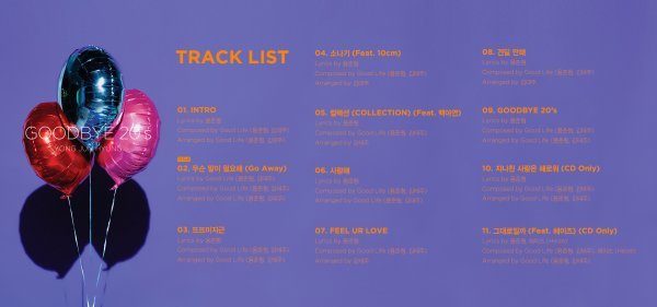 타이틀곡 외에도 영화 속 연인들의 헤어지는 모습을 용준형 특유의 노랫말로 풀어낸 ‘뜨뜨미지근’, 용준형의 담백한 보컬과 랩에 10cm 권정열의 매력적인 음색이 더해 탄생한 ‘소나기’, 청량한 보컬로 사랑받는 백아연이 피처링을 맡은 ‘컬렉션’, 사랑에 빠진 남자의 마음을 솔직 담백하게 담아낸 ‘사랑해’를 비롯하여 ‘견딜만해’와 앨범 타이틀과 동명인 ‘GOODBYE 20’s’가 담겼다.
