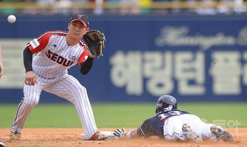 5일 서울 잠실야구장에서 ‘2018 신한은행 MY CAR KBO리그’ 두산베어스와 LG트윈스 경기가 열렸다. 4회초 2사 1루에서 두산 허경민이 2루 도루에 성공하고 있다.