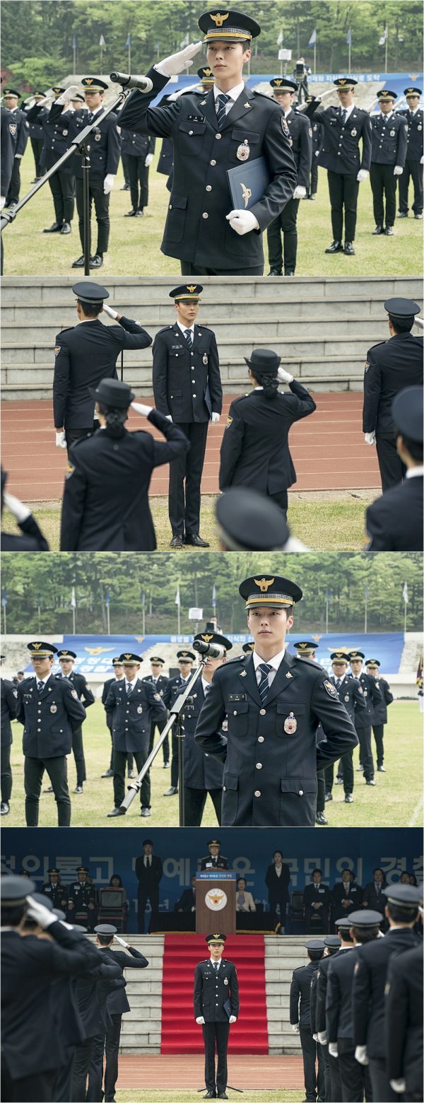 공개된 사진에는 경찰대학 에이스 채도진(장기용 분)이 졸업식에서 학생들의 선봉에 선 모습이 담겨 있다. 머리부터 발끝까지 정갈한 정복 차림의 그는 당장 사건 현장에 나가도 손색없을 정도로 듬직한 경찰의 면모를 보여주고 있다.